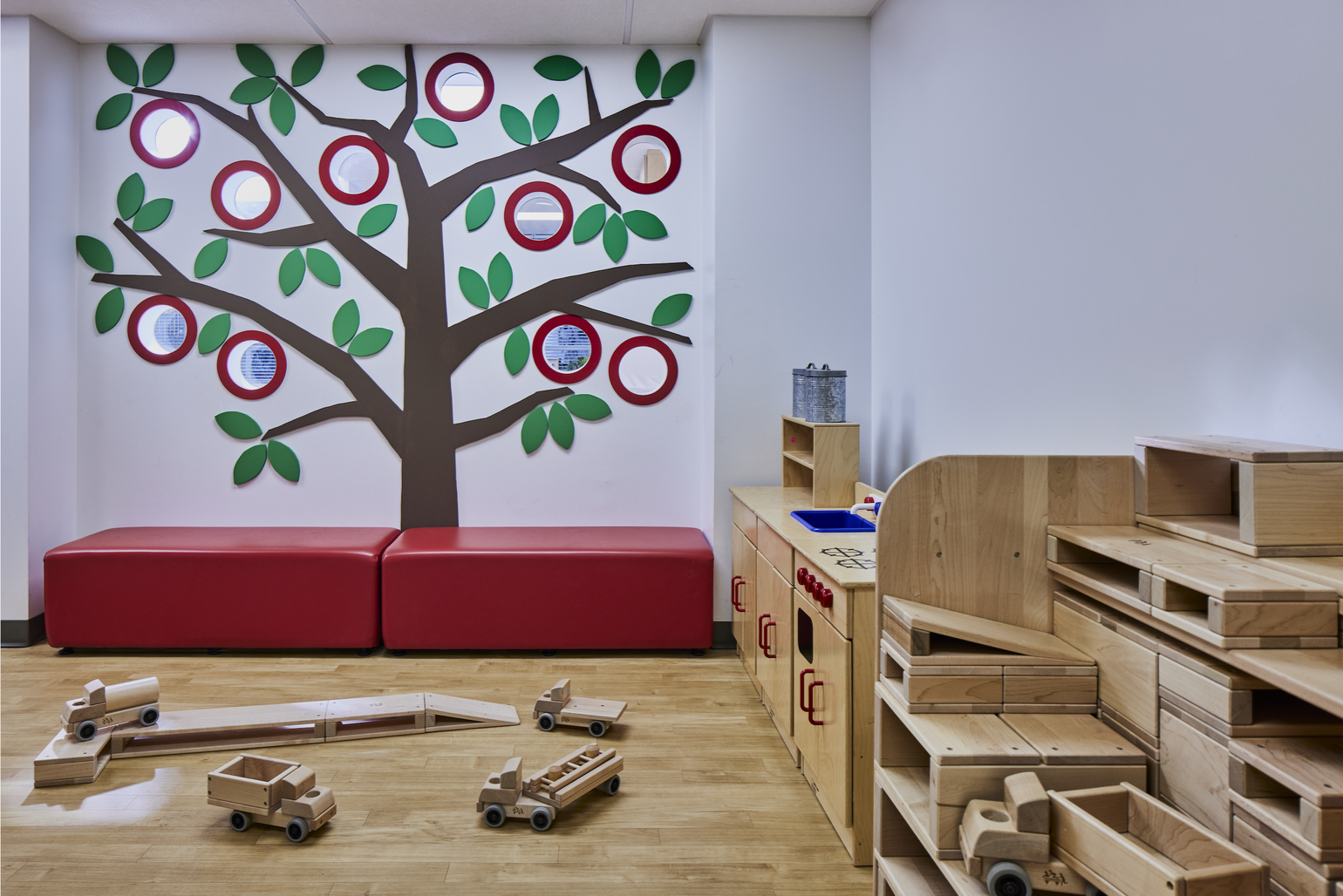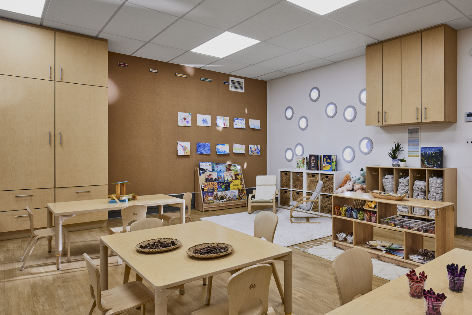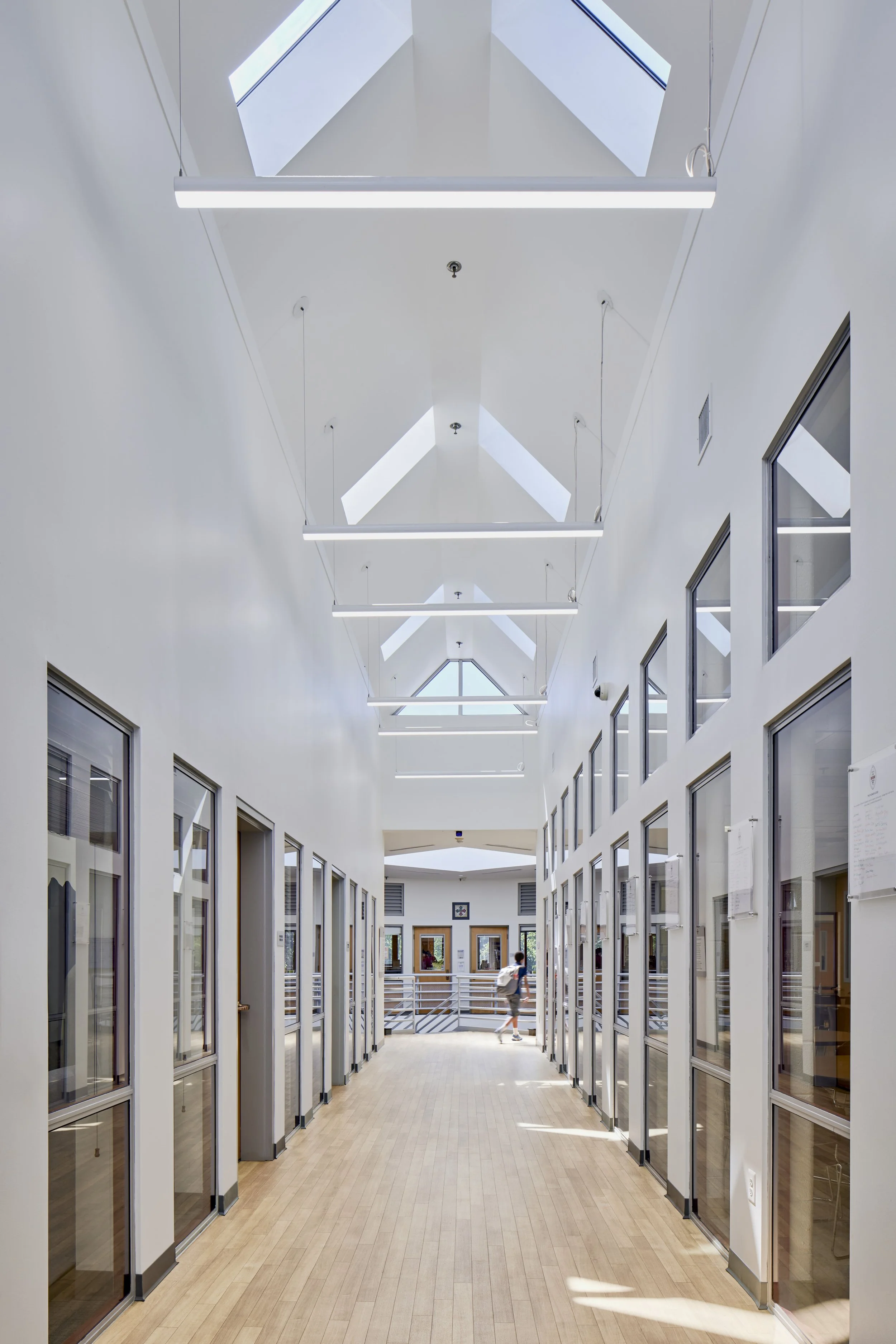 The first floor of Sinclair Hall was gutted and retrofitted to follow suit with the design vocabulary and materials palate developed in collaboration with SSSAS. Kid-friendly and flexible, the new facility welcomes the young students into academia.