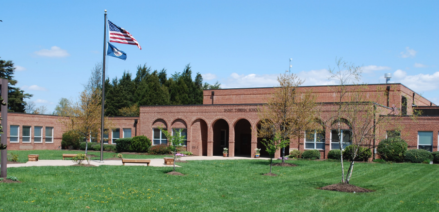 Above, St. Theresa School, brand new out of the ground in 1993, O’Brien & Keane’s first project of many for the Catholic Diocese of Arlington. Phase IV completed the project, which featured a new entrance, flexible meeting rooms, offices and an Adoration Chapel.